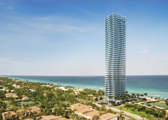 Unique “Wet Wall” Oceanfront The Regalia tower, a geometrical glass masterpiece, is elegantly slender, emitting an aura of classical style. Each of the 39 oceanfront Regalia residences occupies its own floor. The units are laced with an impressive traveling terrace that protects the shimmering glass from the Florida sun. The walk-around terrace mimics the shape of the architecture. A unique façade showcases glass, horizontal bands that act as balustrades. The balustrades periodically change colors at various floor levels.