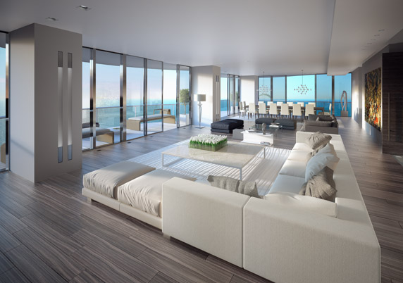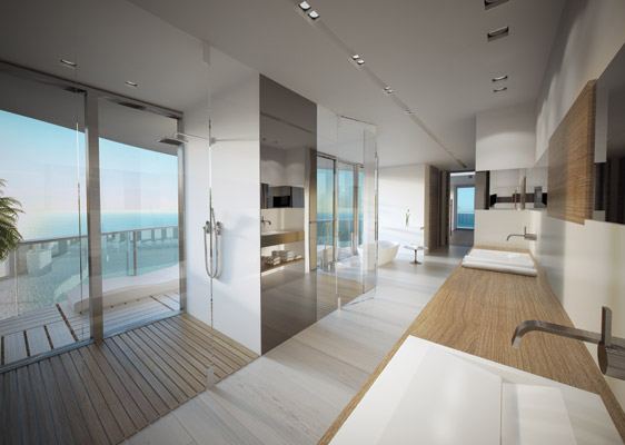 The interior square footage of each spacious Regalia Miami Condo is 5,515. The exterior square footage of each is 2,100. Each home is complete with wet walls, which permit you as an owner to conceptualize and create your own unique living space. Approximately 7,600 square feet of living in each unit is complemented by cascading floor-to-ceiling windowed walls that reveal ocean views at every turn. A flood of sunshine through the spectacular glass prism can be enjoyed throughout the day; and spacious exteriors invite a welcome ocean breeze morning, Noon and night.